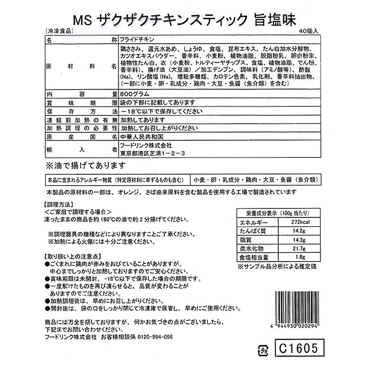 ザックザクの食感が特徴の、手軽に食べられるスティックタイプのチキンです。