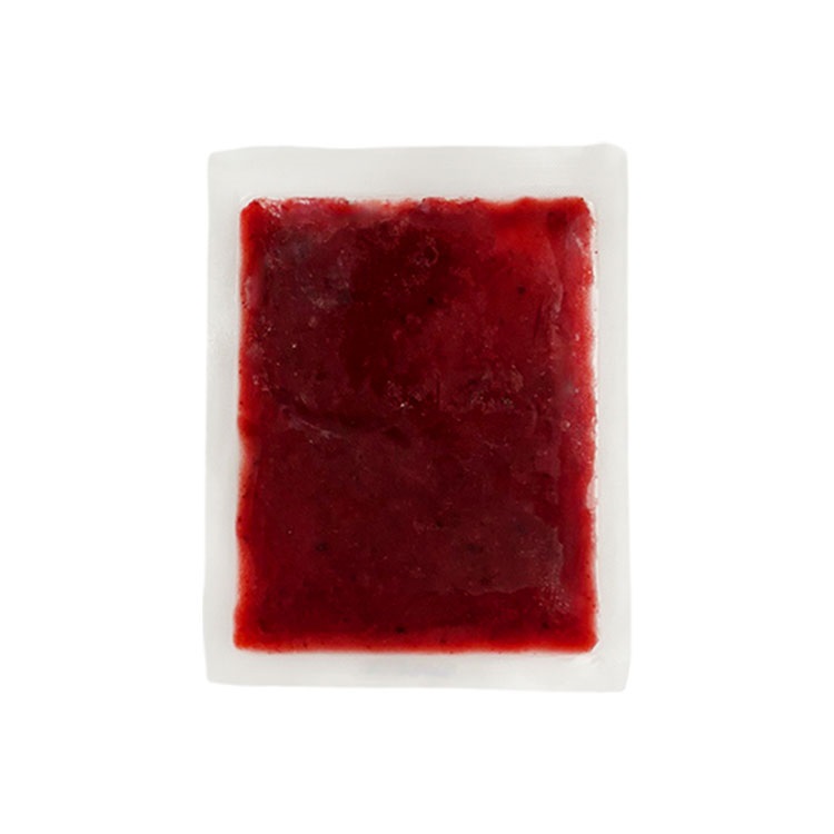 ①レッド フルーツベースを電子レンジで凍ったまま1個あたり[500W]1分10秒加熱し解凍します。※時間は目安です。