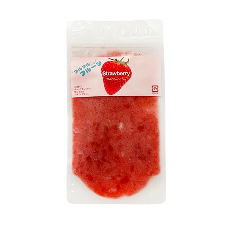 ・つぶつぶ食感とフレッシュな香りが楽しめるので、のむヨーグルトと合わせるだけで、デザート感覚のいちごヨーグルトスムージーが完成します。