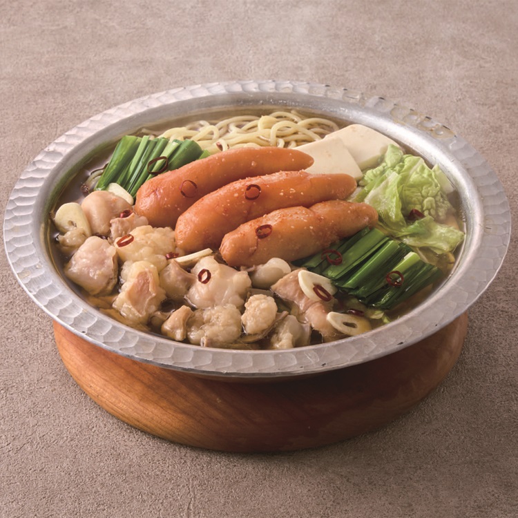 【商品特長】 博多を代表する無着色辛子明太子と博多もつ鍋に、たっぷりのにんにくをかける背徳感たっぷりの鍋セットです。