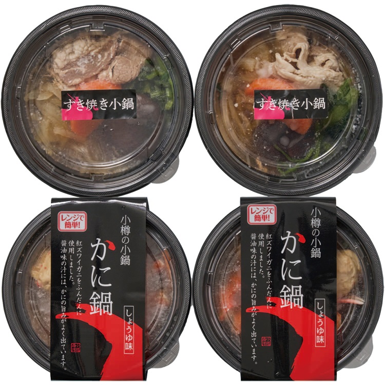 【商品内容】 北海道牛すき焼き鍋200g・かに鍋280g×各2