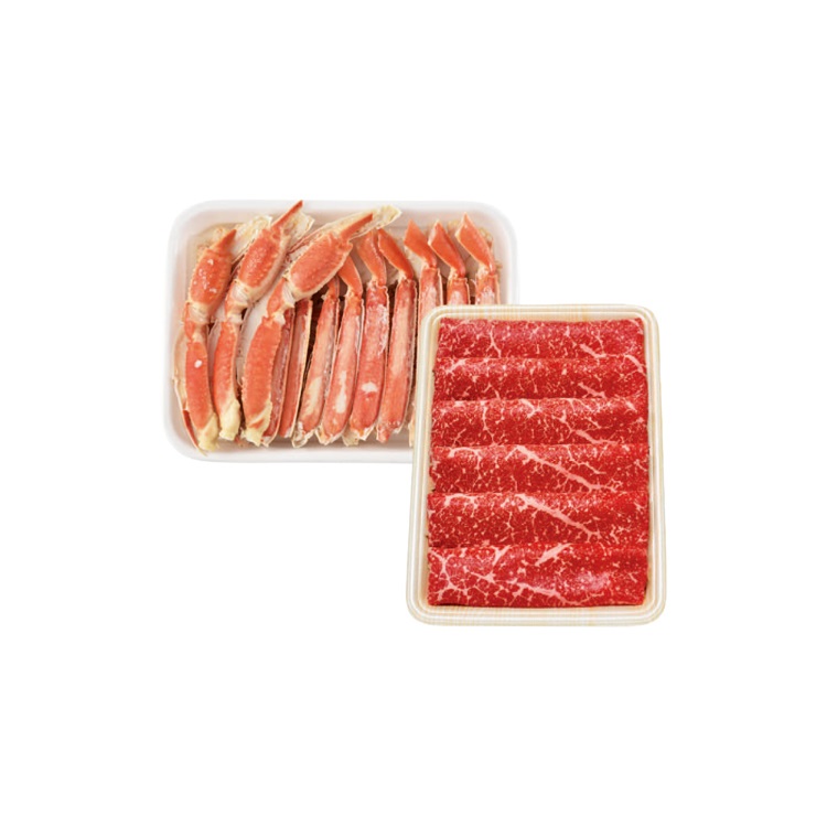 【商品内容】 ボイルずわい蟹半剥き身(棒脚・爪・爪下・肩肉)合計700g(ロシア又はアメリカ産)、黒毛和牛すき焼き用(モモ・肩)合計240g(全て北海道にて加工)