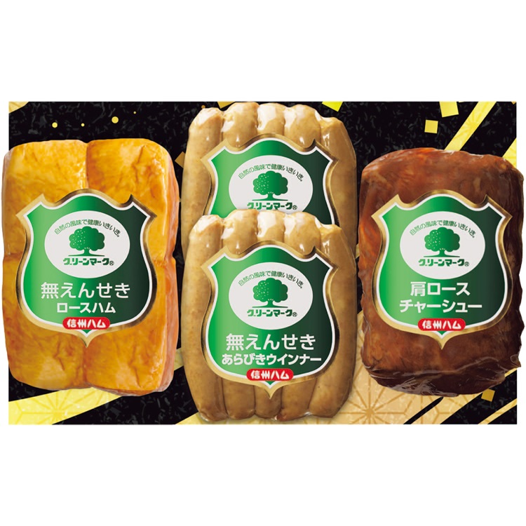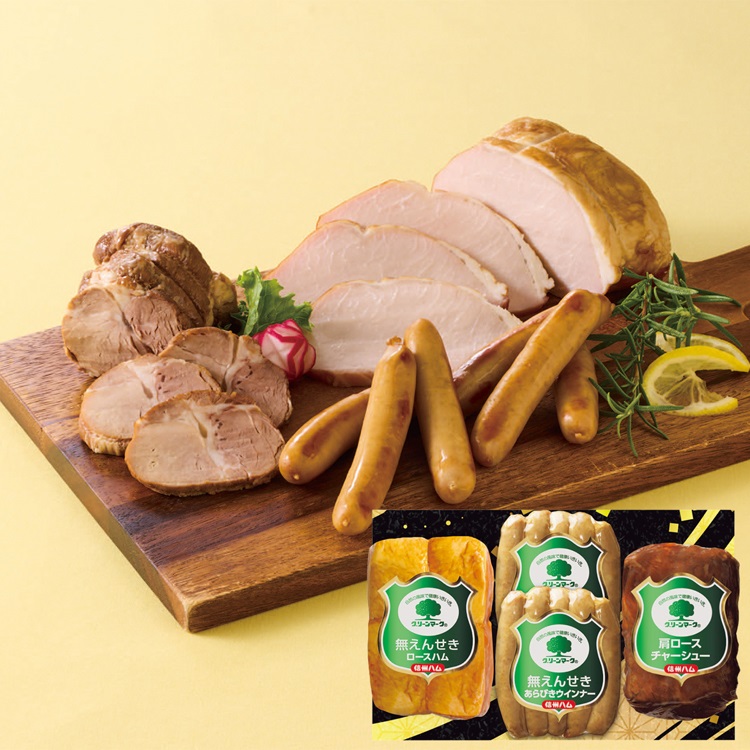 【商品特長】 【体にやさしく安心】発色剤・着色料・保存料・リン酸塩不使用のハムやウインナー、チャーシューをセットにしたギフトです。