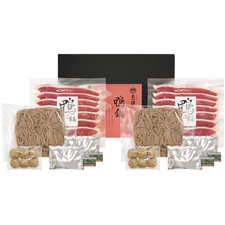 【商品特長】合鴨ロースとつくね、鴨だし、五割そばがセットになった鴨鍋です。【商品内容】約4人前/合鴨ロース130g・合鴨つくね(6個入)・五割そば200g×各2、鴨だし(濃縮)30g・山椒0.2g×各4■賞味期限:製造後90日 ■包装形態:簡易包装■熨斗:外のし■持参包装:不可■配達区分:冷凍■希望着日:不可■全国配送:無し※着日指定の受付はできません。ご注文確定の15日前後にお届けします。