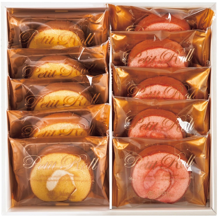 【商品特長】 くちどけなめらかなクリームを卵風味豊かな生地で包んだプレーンと、いちごジャム入りクリームをいちごが香る生地で包んだ季節限定いちご味のアソート。