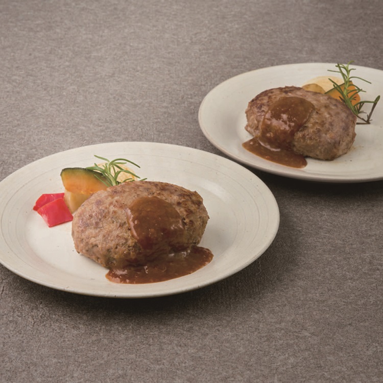 【商品特長】 黒毛和牛の旨味と、ごぼうの香りと食感が楽しめる2種類のハンバーグステーキセットです。
