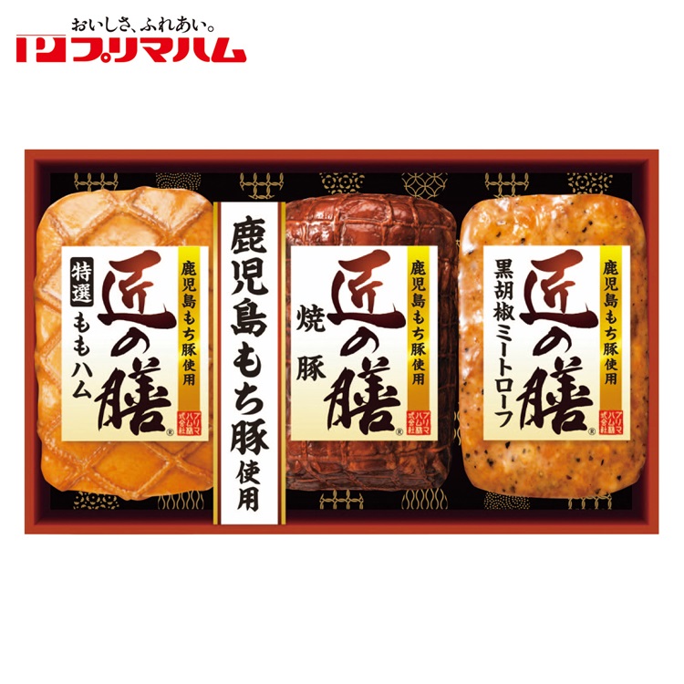 【商品内容】特選ももハム230g、焼豚200g、黒胡椒ミートローフ170g■賞味期限:製造後90日 ■包装形態:簡易包装■熨斗:外のし■持参包装:不可■配達区分:冷蔵■希望着日:不可■全国配送:無し※着日指定の受付はできません。ご注文確定の15日前後にお届けします。