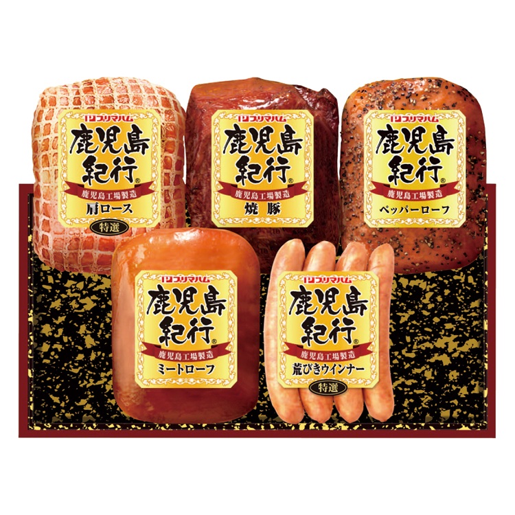 【商品内容】 特選肩ロース・焼豚各180g、ペッパーローフ・ミートローフ各140g、特選荒びきウインナー80g