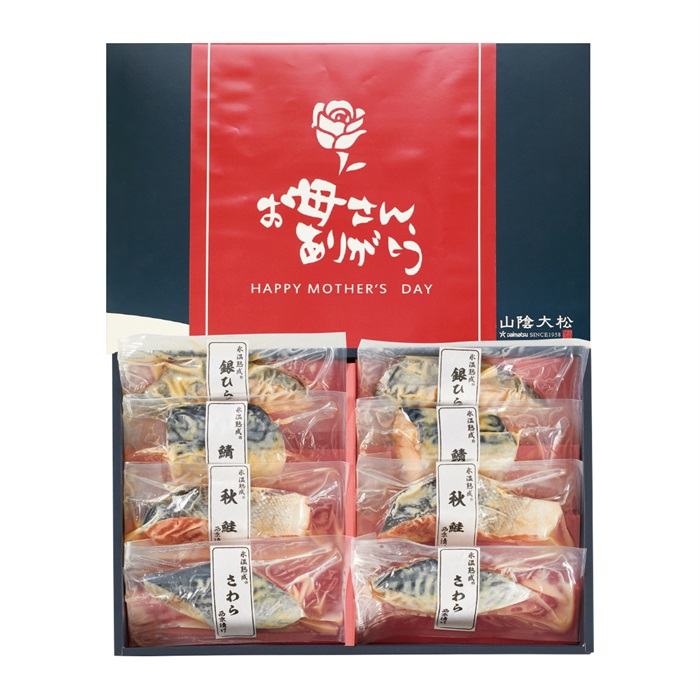 【商品内容】銀ひらす・秋鮭・鯖各60g×各2、さわら70g×2■賞味期限:出荷後60日■包装形態:簡易包装■熨斗:対象外■配達区分:冷凍■希望着日:不可■受付終了日:5/1 9:59まで■お届期間:5/6-5/10■外装サイズ:縦26.5cm×横41cm×高さ4.5cm■型番:SSK-8■全国配送:無し