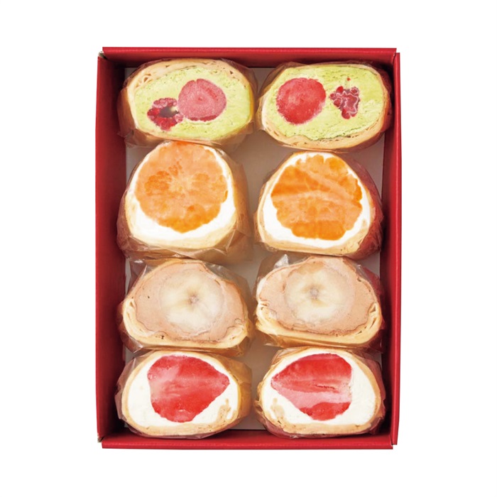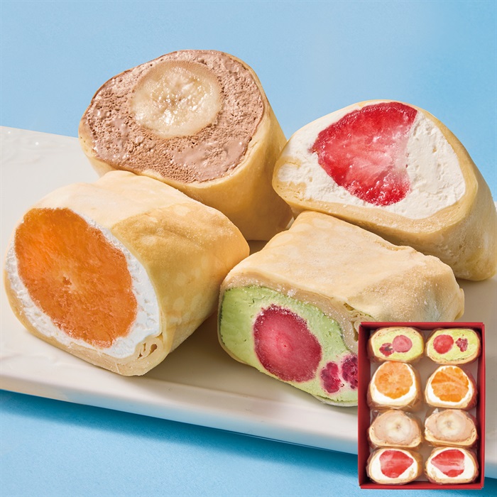 【商品内容】 ちーずいちご・ちょこばなな・抹茶べりー・くりーむみかん×各2 ■賞味期限:出荷後30日 ■包装形態:包装不可 ■熨斗:対象外 ■配達区分:冷凍 ■希望着日:不可 ■受付終了日:6/12 9:59まで ■お届期間:6/18-6/21 ■外装サイズ:縦16.5cm×横22.5cm×高さ8cm ■型番:A24-6 ■全国配送:無し