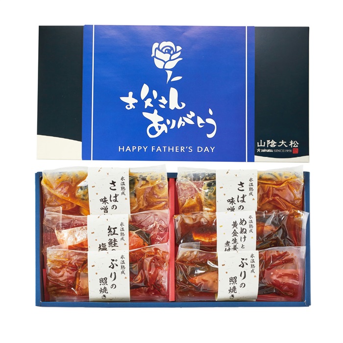 【商品内容】 さばの味噌煮・ぶりの照焼き各90g×各2、めぬけと黄金生姜の煮付け100g、紅鮭の塩焼き60g ■賞味期限:出荷後60日 ■包装形態:簡易包装 ■熨斗:対象外 ■配達区分:冷凍 ■希望着日:不可 ■受付終了日:6/12 9:59まで ■お届期間:6/18-6/21 ■外装サイズ:縦20.5cm×横41cm×高さ4.5cm ■型番:NYG-6 ■全国配送:無し