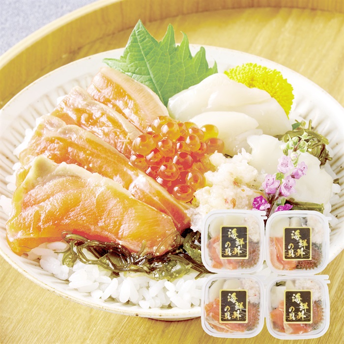 【商品内容】 48g(トラウトサーモン・帆立・紅ずわいがにむき身・いくら醤油漬・味付刻み昆布)×4 ■賞味期限:製造後180日 ■包装形態:包装不可 ■熨斗:対象外 ■配達区分:冷凍 ■希望着日:不可 ■受付終了日:6/12 9:59まで ■お届期間:6/18-6/21 ■外装サイズ:縦17cm×横28cm×高さ7cm ■型番:C4-1 ■全国配送:無し