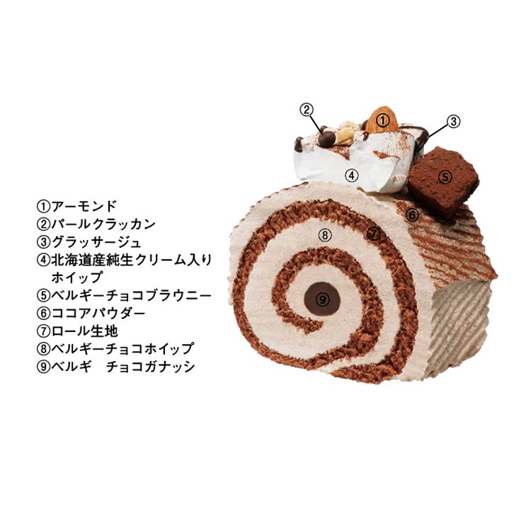 ベルギー産チョコレートと、北海道産純生クリーム入りのチョコホイップを使用した、クリスマスの伝統的なブッシュ・ド・ノエルです。 ※ローソクは付きません。 ※3~4人向け