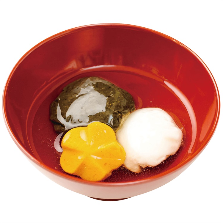 さっくりお餅雑煮、やわらか豆腐白玉入りおしるこ