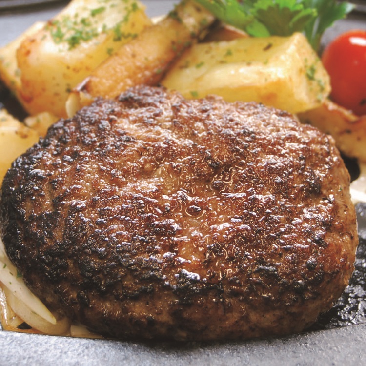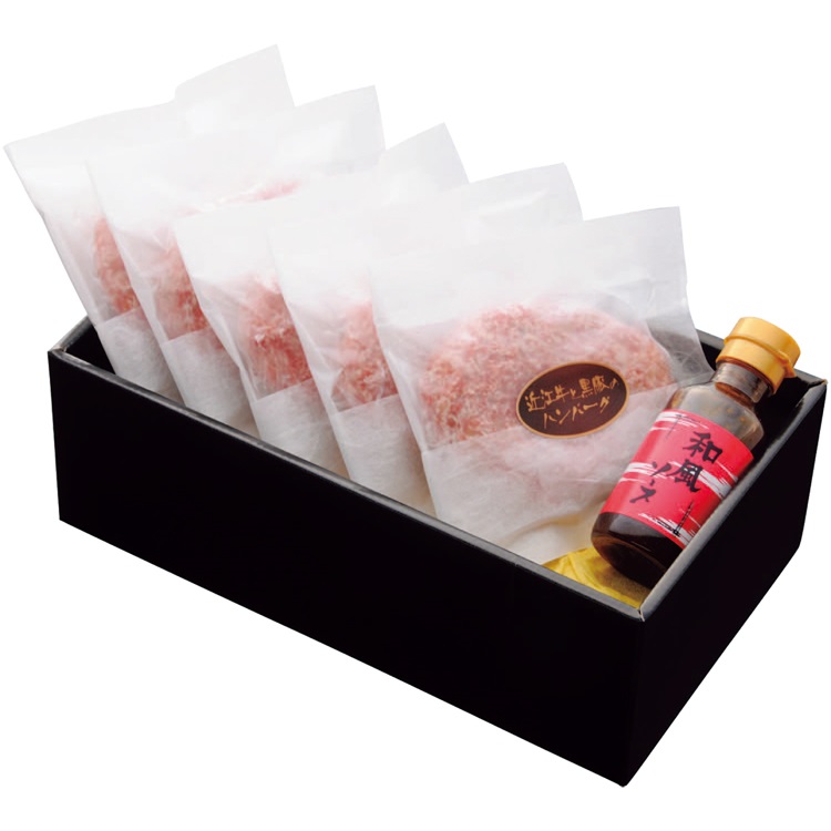 【商品特長】 日本三大和牛のひとつ近江牛と、鹿児島県産の黒豚を使用した、旨味たっぷりで肉汁溢れるジューシーなハンバーグです。