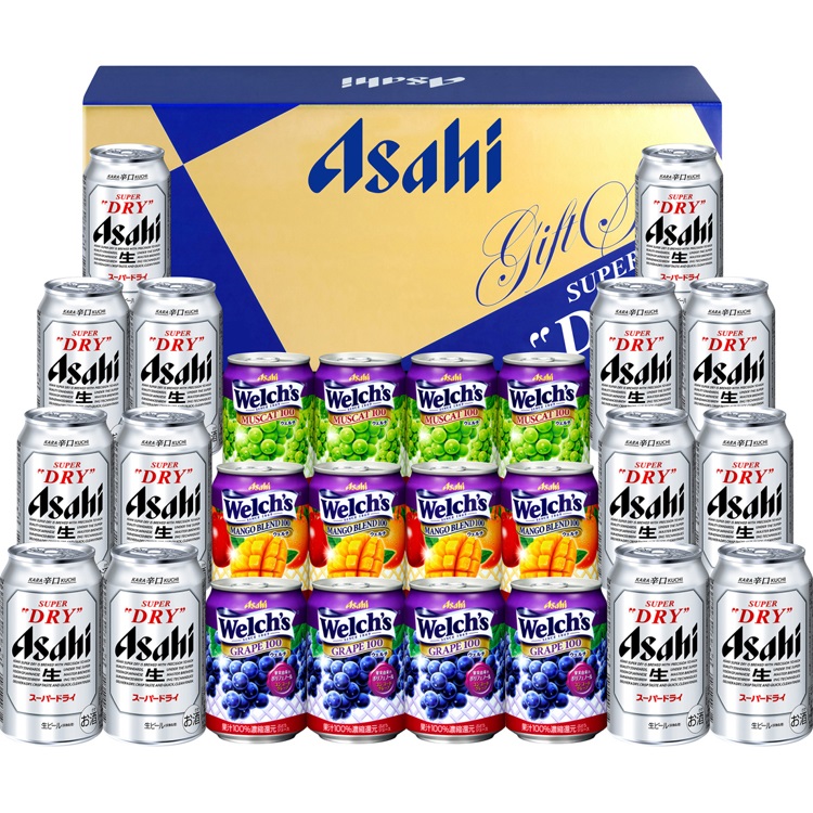 【商品内容】 スーパードライ350ml×14、ウェルチ100(コンコードグレープ・マスカット・マンゴーブレンド)各280g×各4