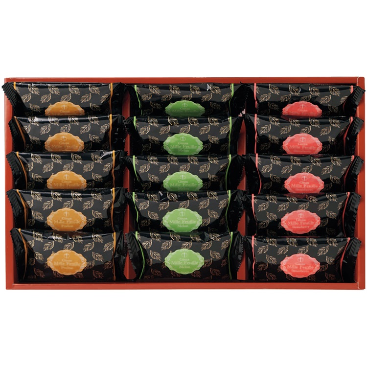 【商品特長】 サクサクのパイ生地に風味豊かなクリームを挟み、チョコレートでコーティングした「銀座千疋屋」オリジナルのミルフィーユです。