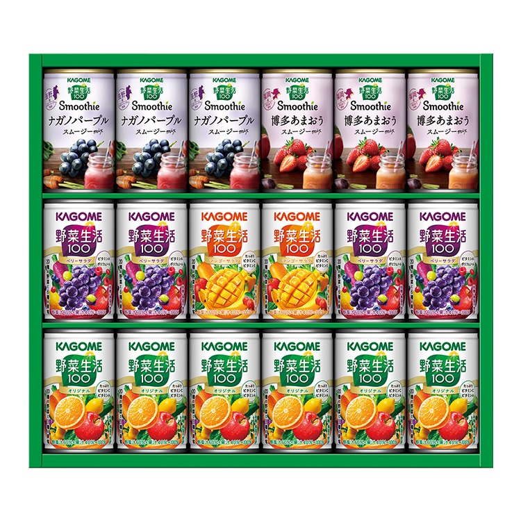 【商品内容】野菜生活100Smoothie(博多あまおうスムージー・ナガノパープルスムージー)各160g×3、野菜生活100(オリジナル×6・ベリーサラダ×4・マンゴーサラダ×2)各160g■賞味期限:製造後545日 ■包装形態:簡易包装■熨斗:外のし■持参包装:不可■配達区分:常温■希望着日:不可■全国配送:全国配送※着日指定の受付はできません。ご注文確定の15日前後にお届けします。