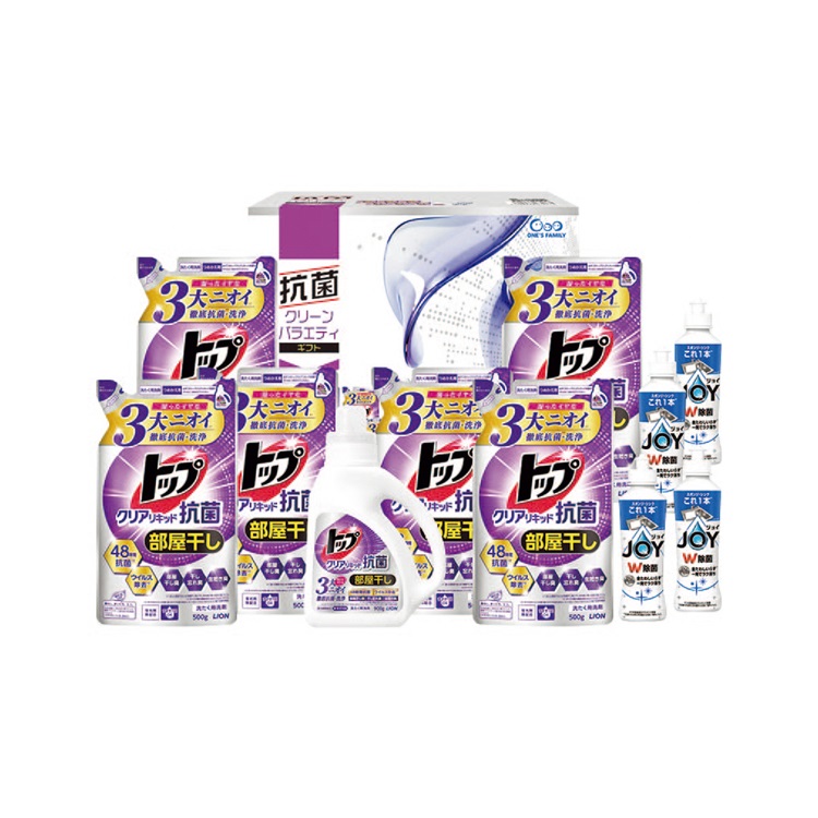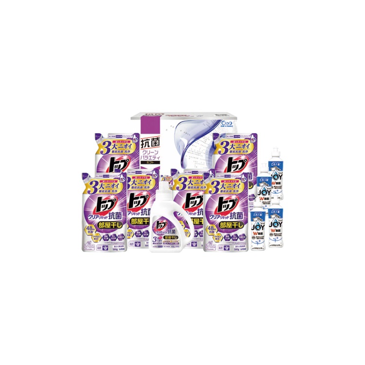 【商品内容】トップクリアリキッド抗菌(本体900g・詰替500g×6)、除菌ジョイコンパクト170ml×4■包装形態:簡易包装■熨斗:外のし■持参包装:不可■配達区分:常温■希望着日:不可■全国配送:全国配送※着日指定の受付はできません。ご注文確定の15日前後にお届けします。