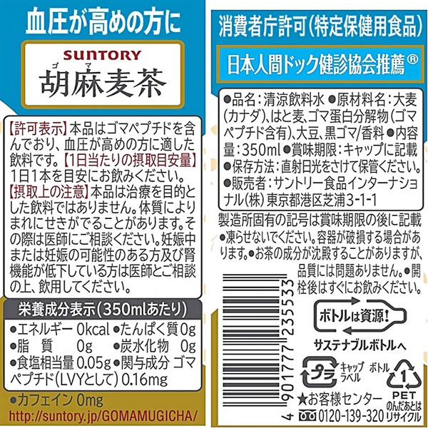 サントリー 胡麻麦茶 350ml×24本×1ケース (24本)(送料無料 、一部地域は除く)