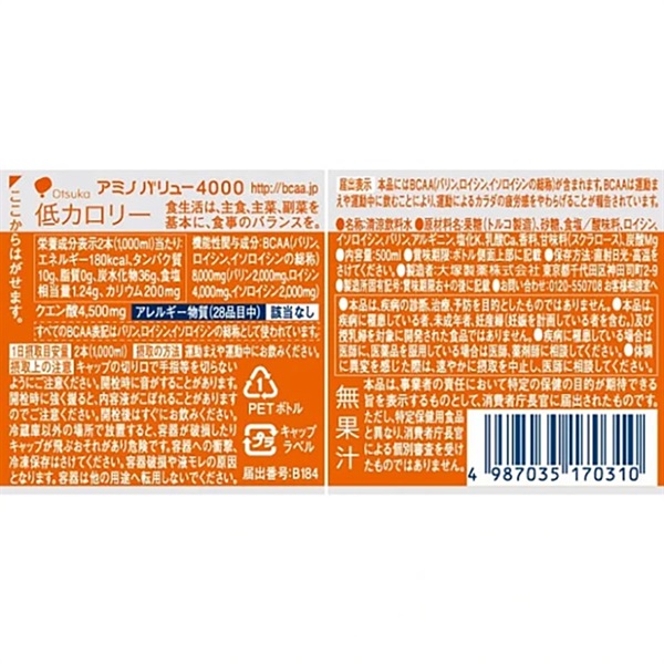 大塚製薬 アミノバリュー4000 500ml×24本×1ケース (24本)(送料無料、一部地域は除く)