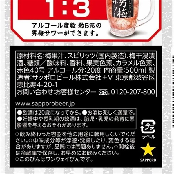 サッポロ 男梅サワーの素 瓶 500ml×12本【送料無料※一部地域は除く】