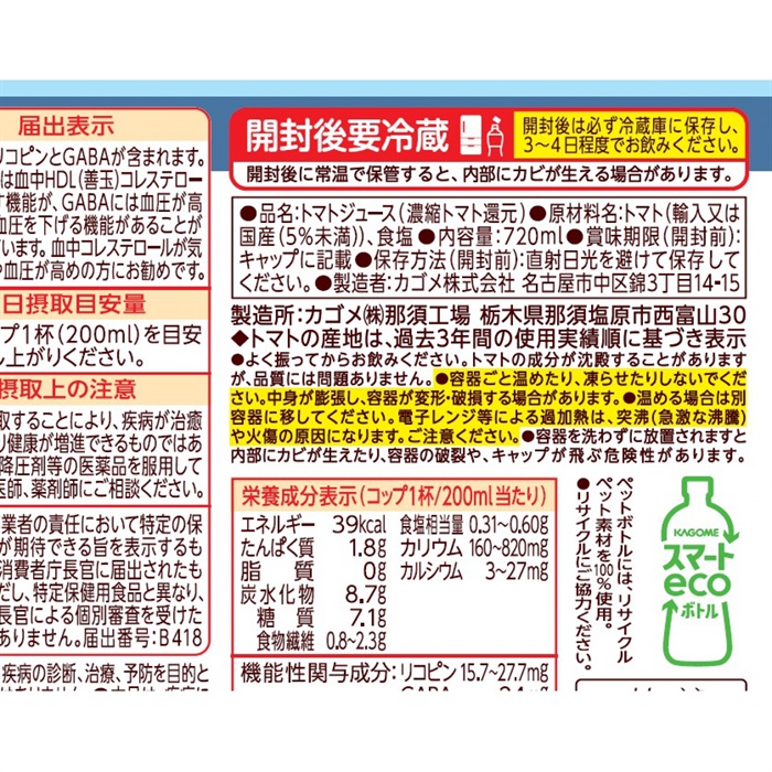 カゴメ トマトジュース 低塩 720ml×15本×1ケース(15本)(送料無料 、一部地域は除く)