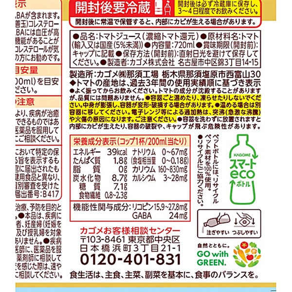 カゴメ トマトジュース 食塩無添加 720ml×15本×1ケース(15本)(送料無料 、一部地域は除く)