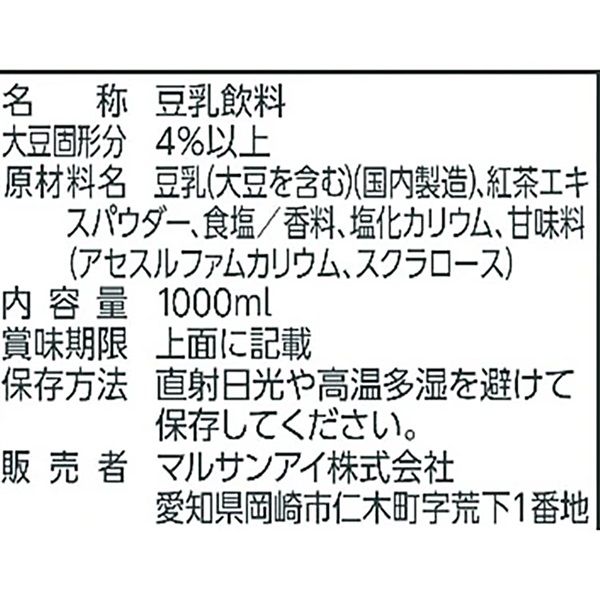 マルサンアイ 豆乳飲料 紅茶 カロリー50%オフ 1000ml×6本×2ケース (12本)(送料無料 、一部地域は除く)