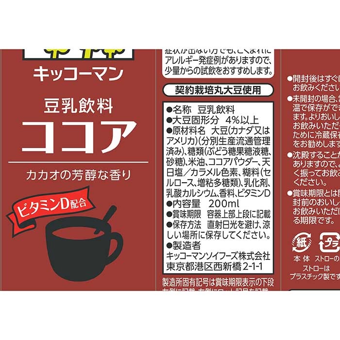 大豆、ココアを素材に使った体にやさしい豆乳飲料です。