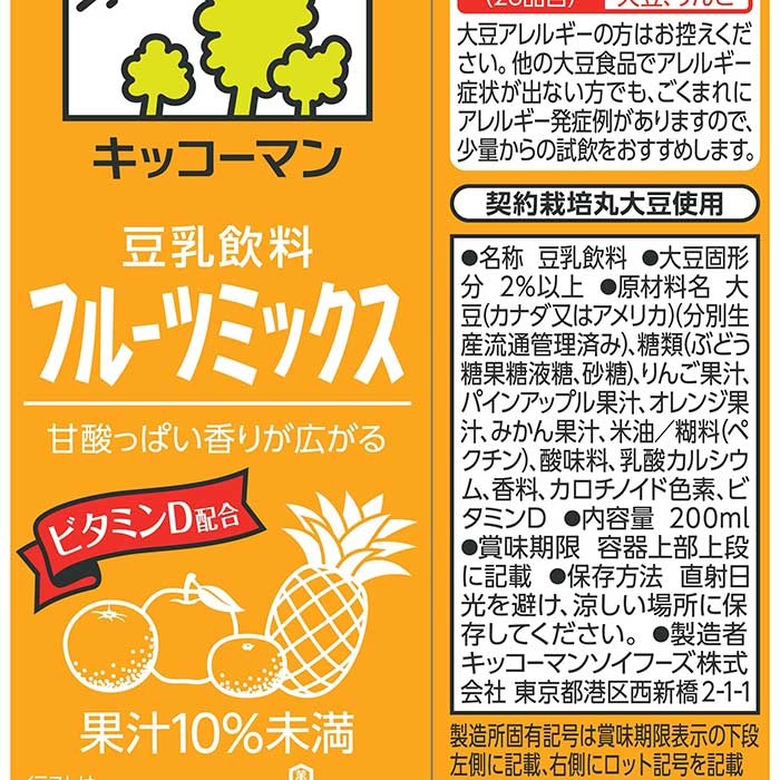 りんご・パインアップル・オレンジ・みかんの果汁をおいしくブレンドした豆乳飲料です。