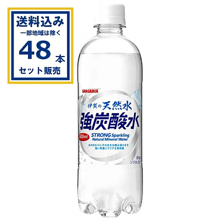 サンガリア 伊賀の天然水 強炭酸水 500ml×24本×2ケース (48本)(送料無料、一部地域は除く)