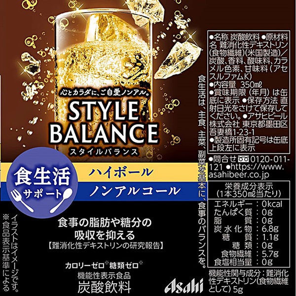 アサヒ スタイルバランス食生活サポートハイボールノンアルコール 350ml×24本×1ケース (24本)(送料無料※一部地域は除く)