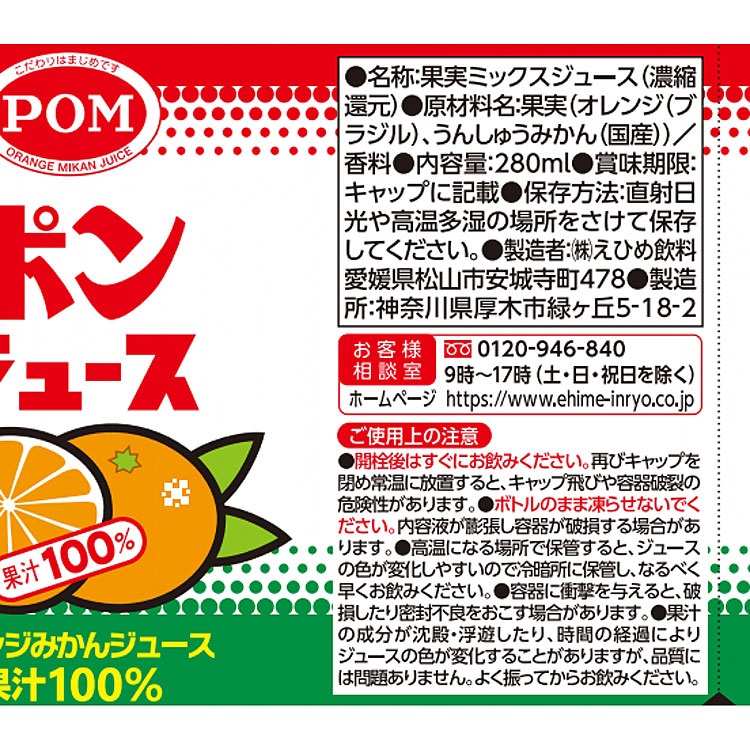えひめ飲料 POM ポンジュース(280ml×24本)×2ケース(48本)(送料無料 、一部地域は除く)