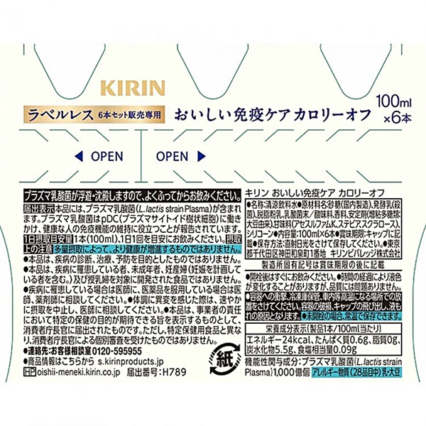 キリン おいしい免疫ケア カロリーオフ ラベルレス 100ml×30本×3ケース (90本) 乳酸菌飲料 乳酸菌 飲料 機能性表示商品 プラズマ乳酸菌 pDC【送料無料※一部地域は除く】