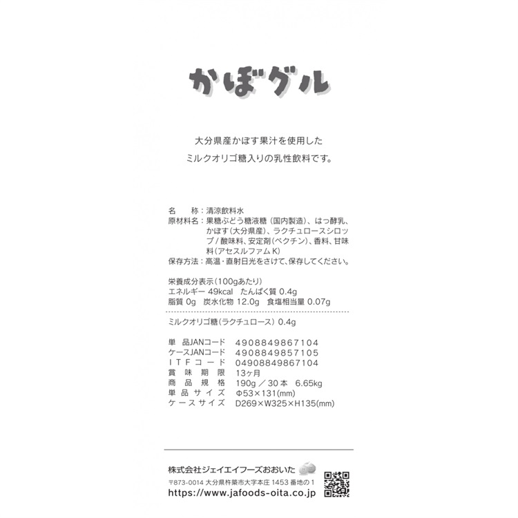 JAフーズおおいた かぼグル 190g×30本×2ケース (60本) (送料無料 、一部地域は除く)