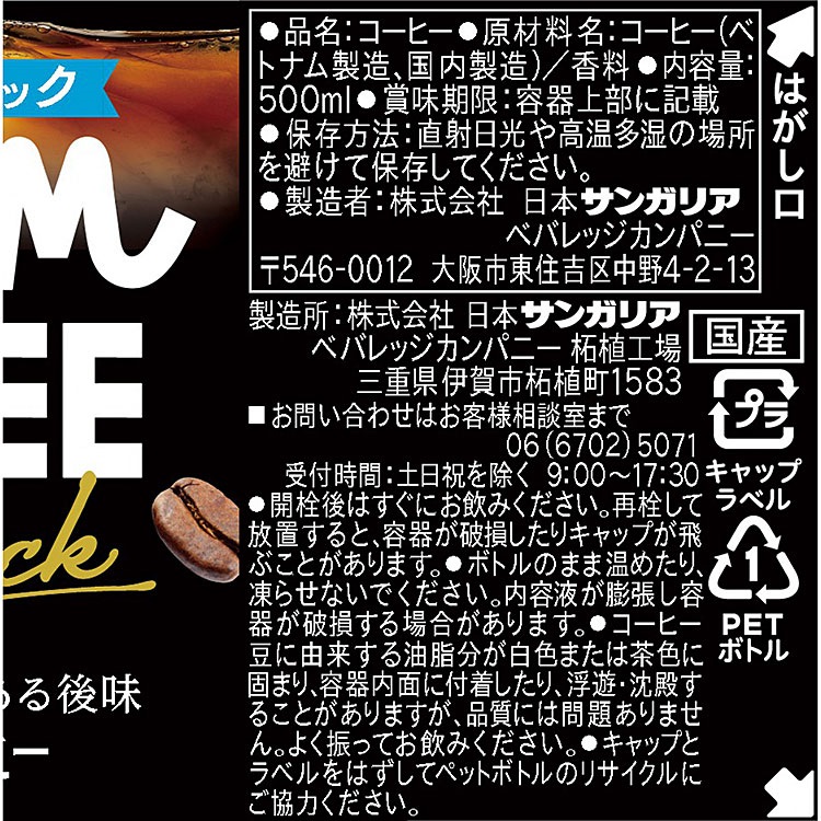 サンガリア カスタムコーヒーブラック 500ml×24本×2ケース (48本)(送料無料、一部地域は除く)