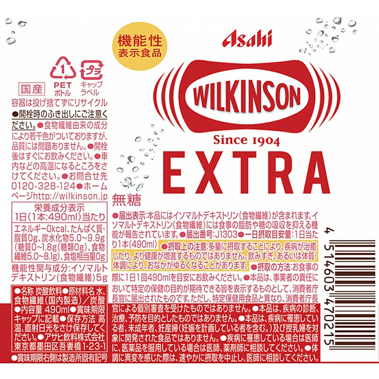 アサヒ ウィルキンソンタンサン エクストラ 490ml×24本×1ケース (24本)(送料無料、一部地域は除く)