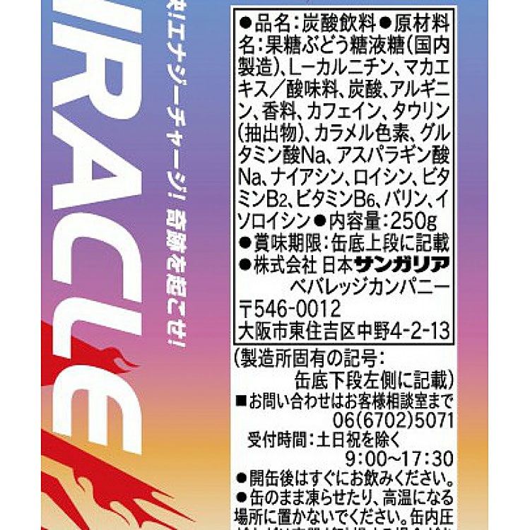 サンガリア ミラクルエナジーNEO 250g×30本×4ケース (120本)(送料無料、一部地域は除く)
