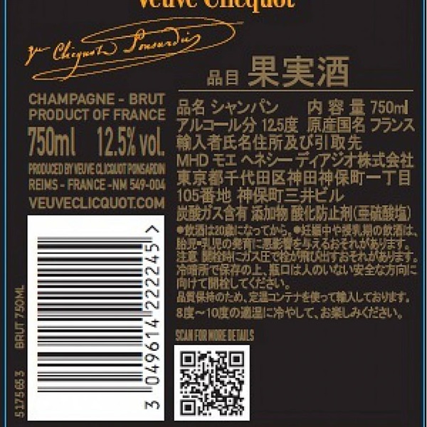 ヴーヴ・クリコを代表するすっきりとした辛口のシャンパン。
