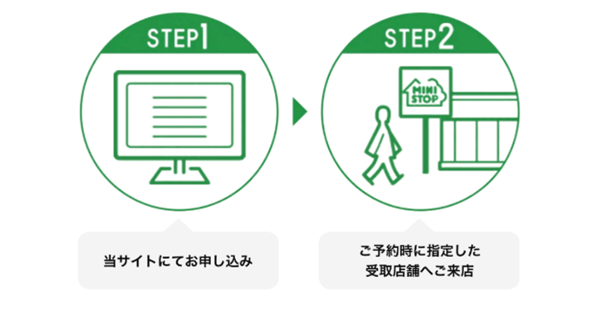 - 1.ミニストップオンラインに会員登録を行い、対象商品のお受取日とお受取店舗を選択して購入します。